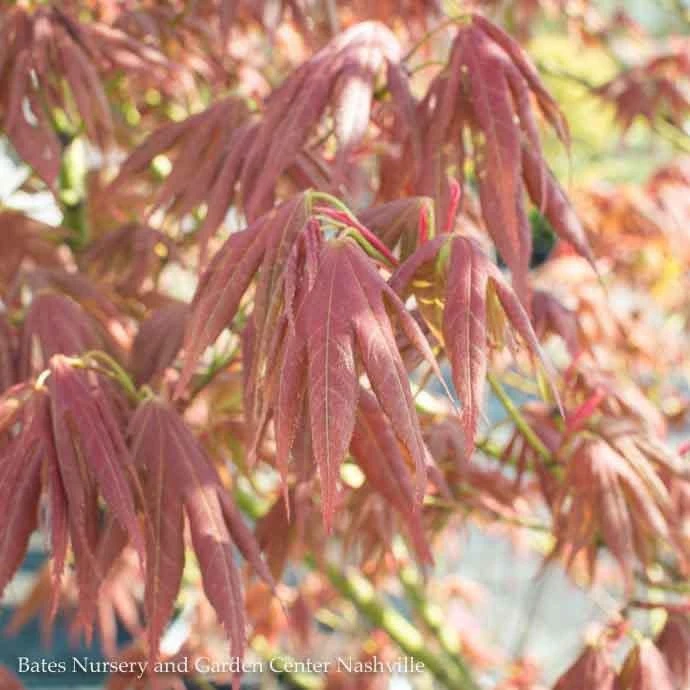FOLIAGE: Red-orange in Summer, becoming speckled with green dots as the season goes on; Orange to Red in Fall