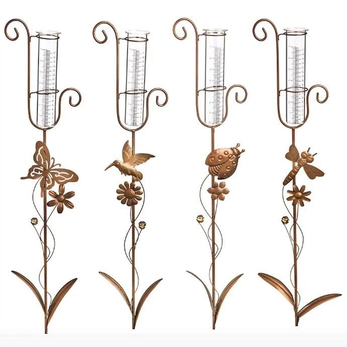 Rain Gauge Garden Stake Critter W/Flower Curl W/ Jewel Asst Designs 37.5″H (#7)